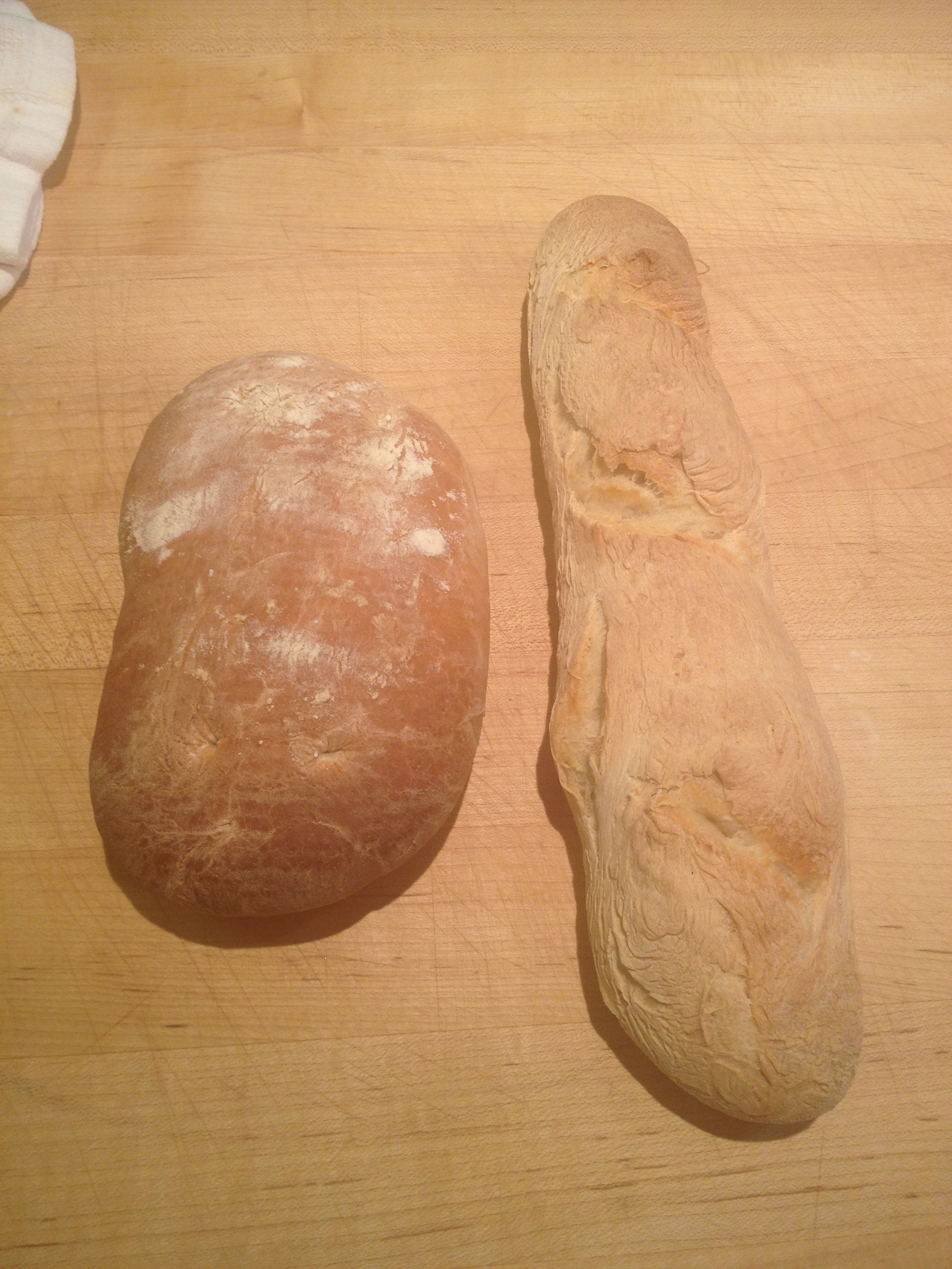 The most encouraging thing I learned from this class was that I should not fear the steps necessary to bake bread. After all, I really enjoyed the act of breaking and eating the bread while they were still fresh out the oven (the little piece of bread on top of the ciabatta is what is left of my baguette).